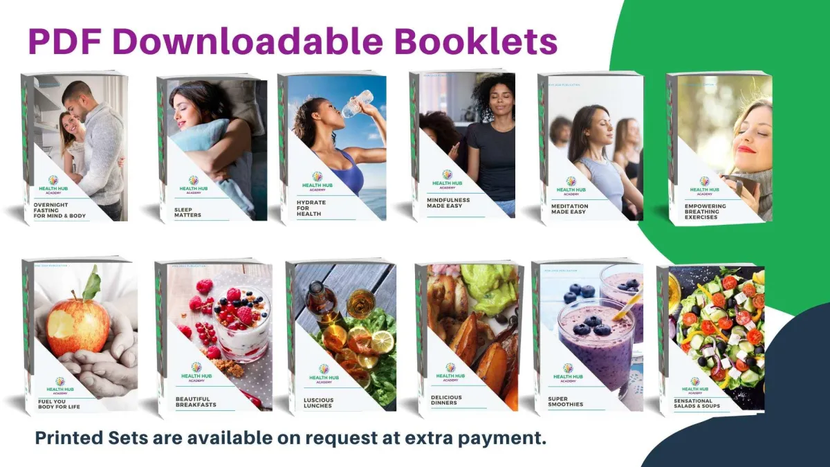 Meal Plan Booklets for Breakfast, Lunches, lunch Box Fillers, Dinners, Soups & Salads, Healthy Snacks, and Smoothies.